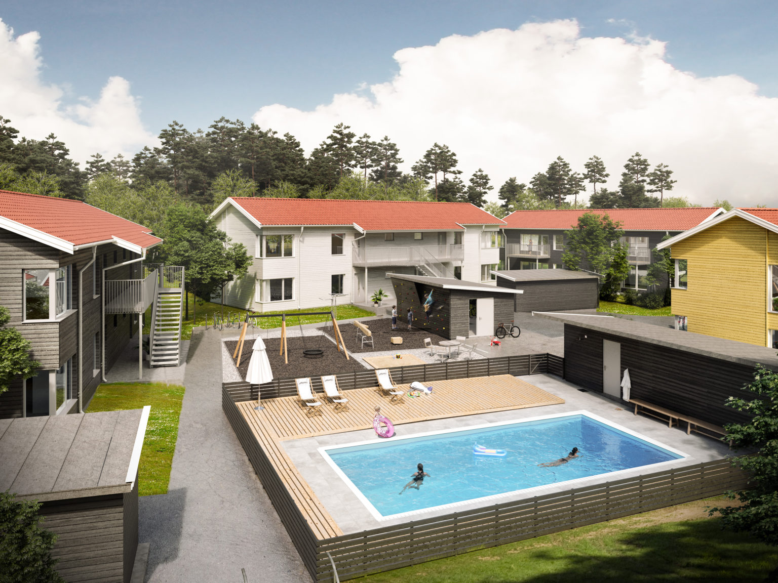 Vi vill bygga spännande boendemiljöer som ger människor möjlighet att göra saker tillsammans utanför bostadens väggar. Därför lägger vi alltid till något extra i varje projekt. Det kan till exempel vara elcyklar, en pool, ett utegym eller odlingslådor för kryddor och grönsaker. Kanske vill ni dra ni upp er egen färskpotatis till midsommarfesten eller fylla odlingsplatserna med bärbuskar att gå och plocka solljumma hallon och jordgubbar ifrån? De gemensamma utrymmena kan bli vallabod under skidsäsongen och plats för cykelreparationer när gruset på gatorna sopats bort. Hur livet och vardagen ska se ut i just ert bostadsområde vet bara ni.